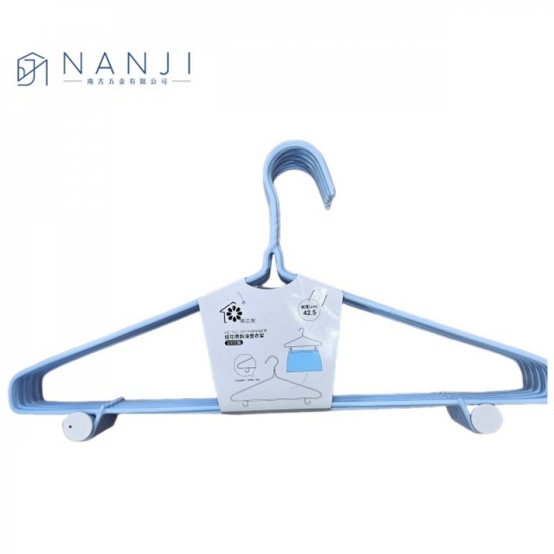 【台南南吉五金】6615扭花帶鉤浸塑衣架 10入/組 肩寬42.5cm