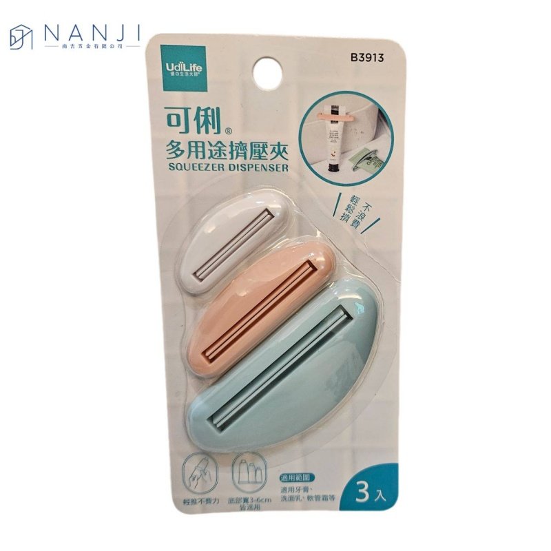 生活大師【台南南吉五金】B3913 可俐/多用途擠壓夾 牙膏夾 3入