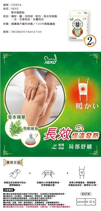 隆藝.巧巧.金獎【台南南吉五金】C5824 NEKO草本暖膝貼(2入)