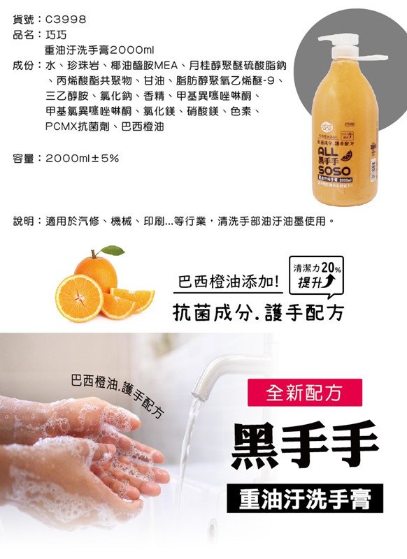 隆藝.巧巧.金獎【台南南吉五金】C3998 重油汙洗手膏2000ml(超取最多1單1瓶) 洗手乳