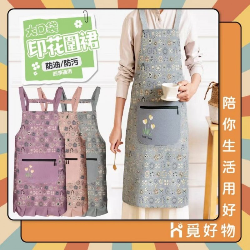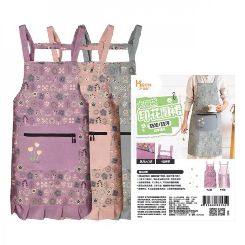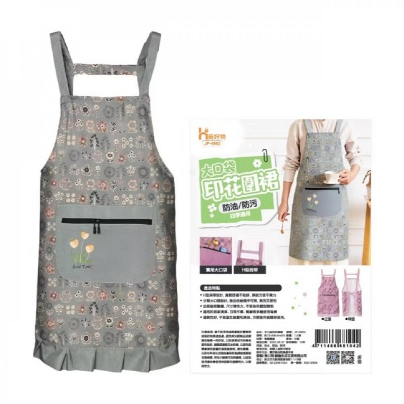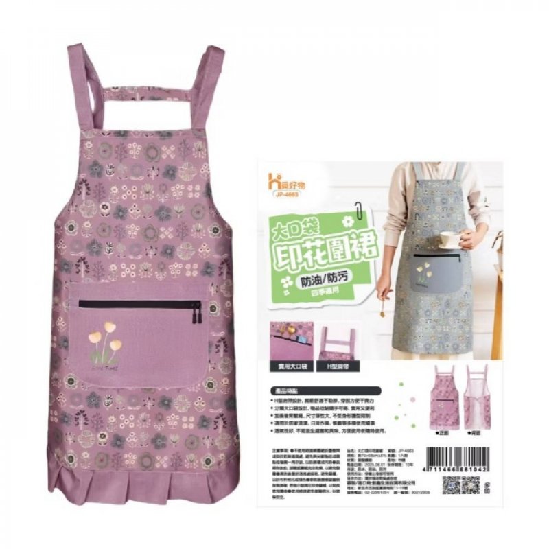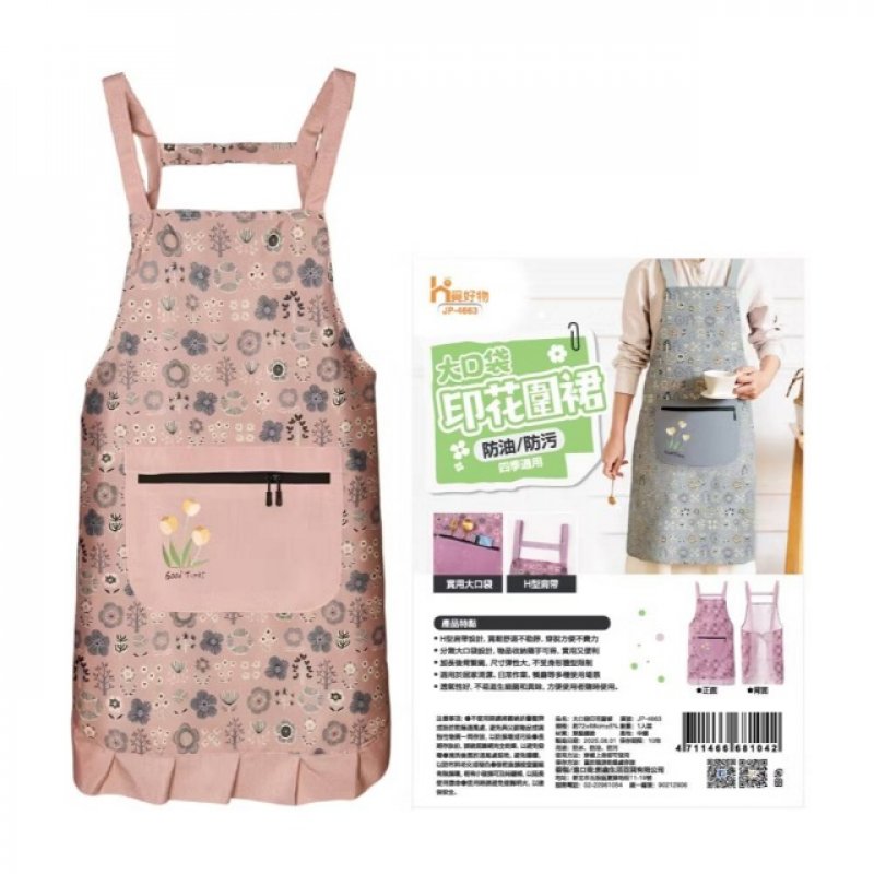 【台南南吉五金】JP-4463 大口袋印花圍裙 廚師圍裙 工作圍裙 防油圍裙 防水圍裙 72x68cm