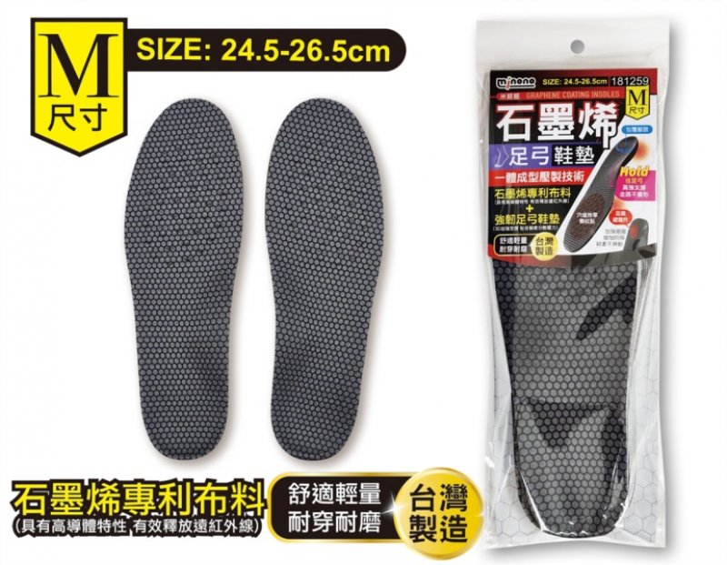 米諾諾【台南南吉五金】石墨烯足弓鞋墊(L) (M) 台灣製造一體成型壓製技術