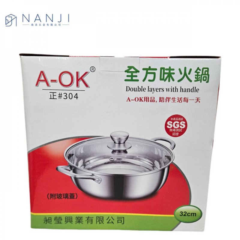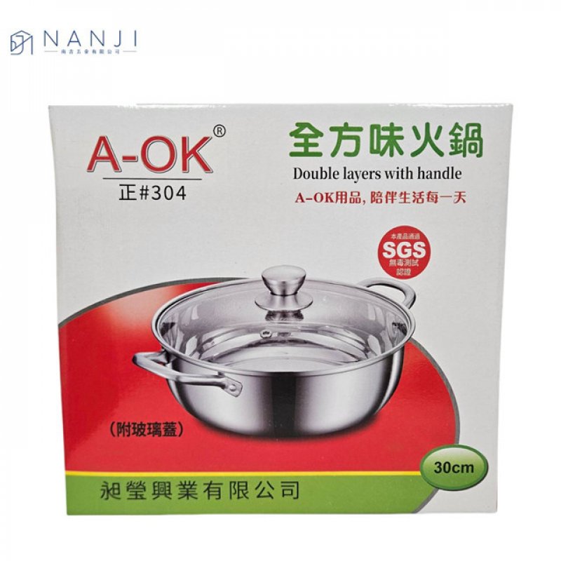 雅緻.AOK【台南南吉五金】AOK 304不銹鋼全方位火鍋 附強化玻璃蓋 30cm 32cm