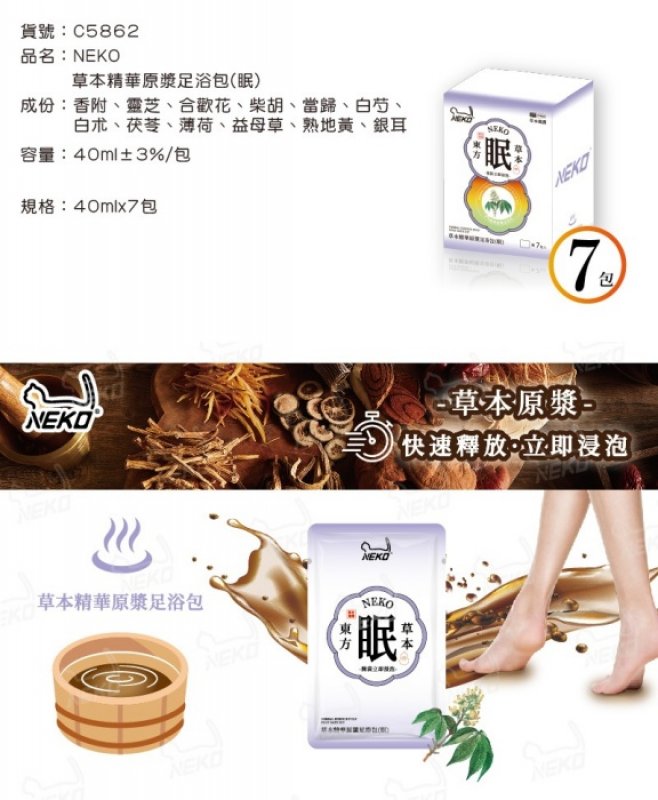 隆藝.巧巧.金獎【台南南吉五金】C5862 NEKO草本精華原漿足浴包(眠)(7包入)