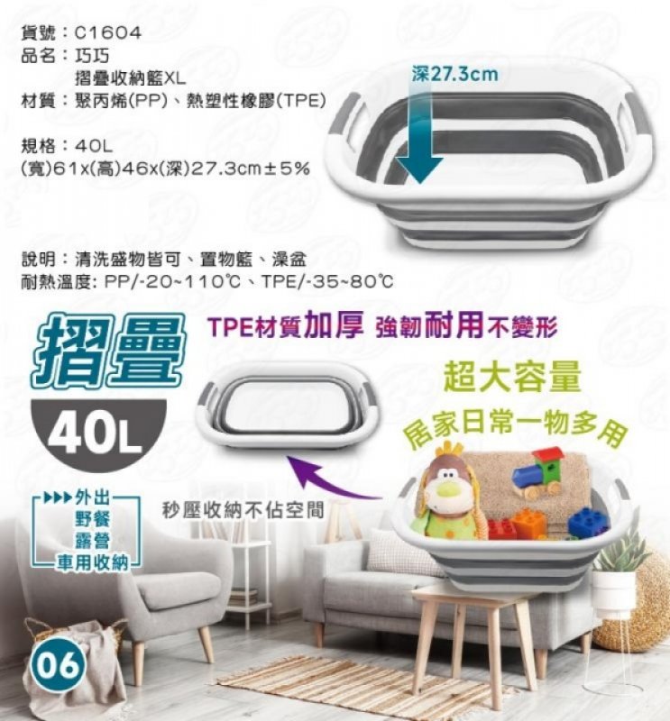 隆藝.巧巧.金獎【台南南吉五金】C1604 摺疊收納籃XL