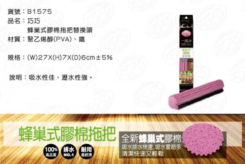 隆藝.巧巧.金獎【台南南吉五金】B1575 蜂巢式膠棉拖把 替換頭 27cm