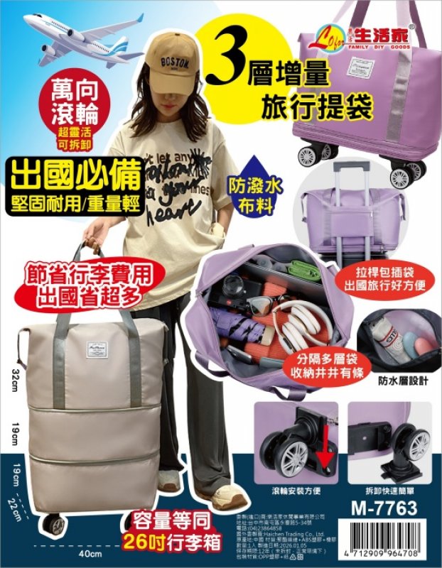 【台南南吉五金】M-7763 滾輪擴充旅行提袋