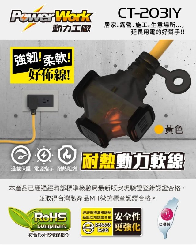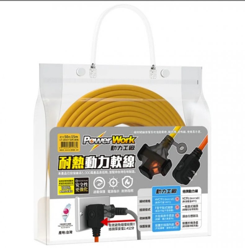 成電CT-2031Y耐熱動力軟線15A 1尺;2尺;15尺;30尺;40尺;50尺