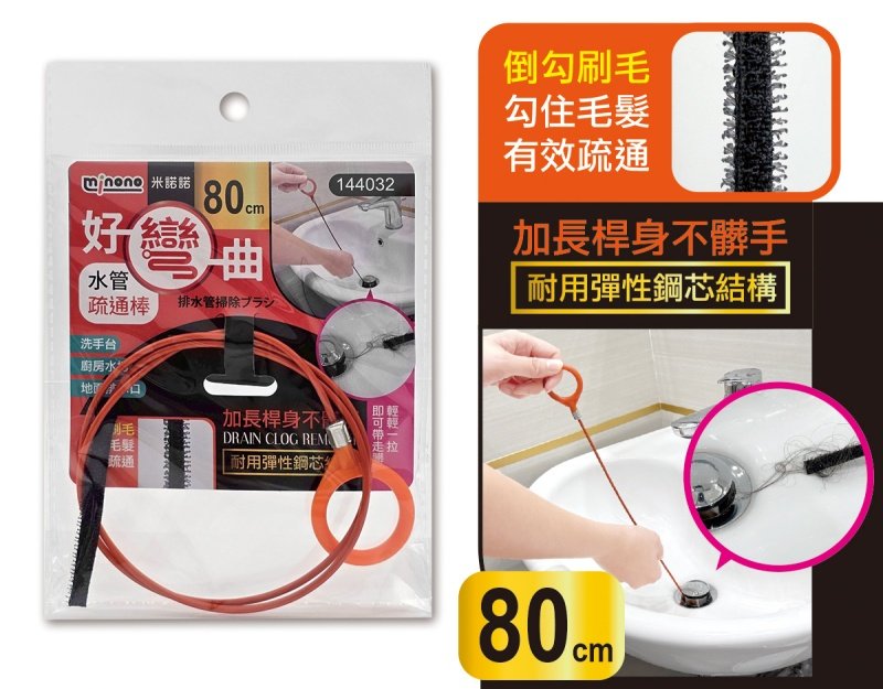 米諾諾【台南南吉五金】144032 好彎曲水管疏通棒80cm